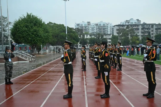国旗仪仗队步伐铿锵、眼神坚定,护卫着五星红旗庄严入场。当《义勇军进行曲》激昂奏响,全体师生肃立高唱,格外嘹亮。五星红旗冉冉升起,如同信念在洗礼中愈加鲜明。