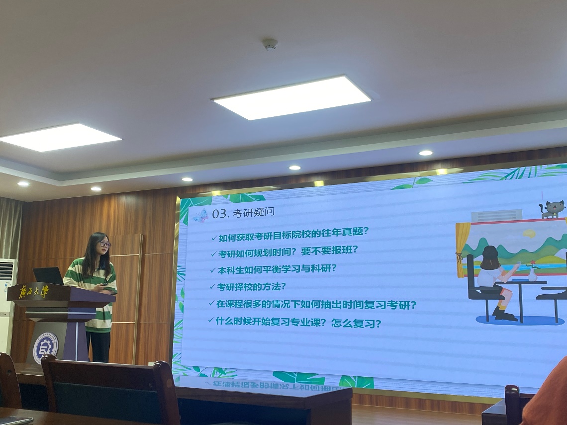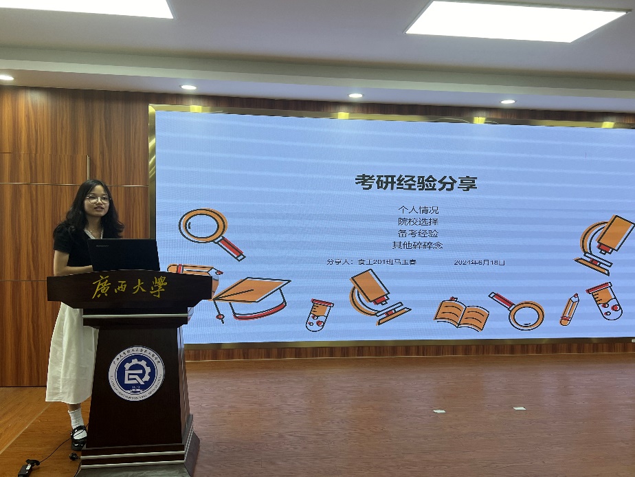 604报告厅开展,沙龙邀请到六位考研保研成功的优秀毕业生到场分享经验,六名升学的同学依次分享了个人保研、考研的经验和心路历程。