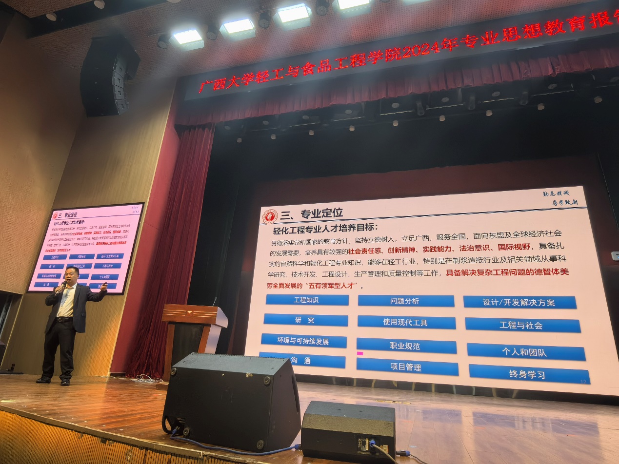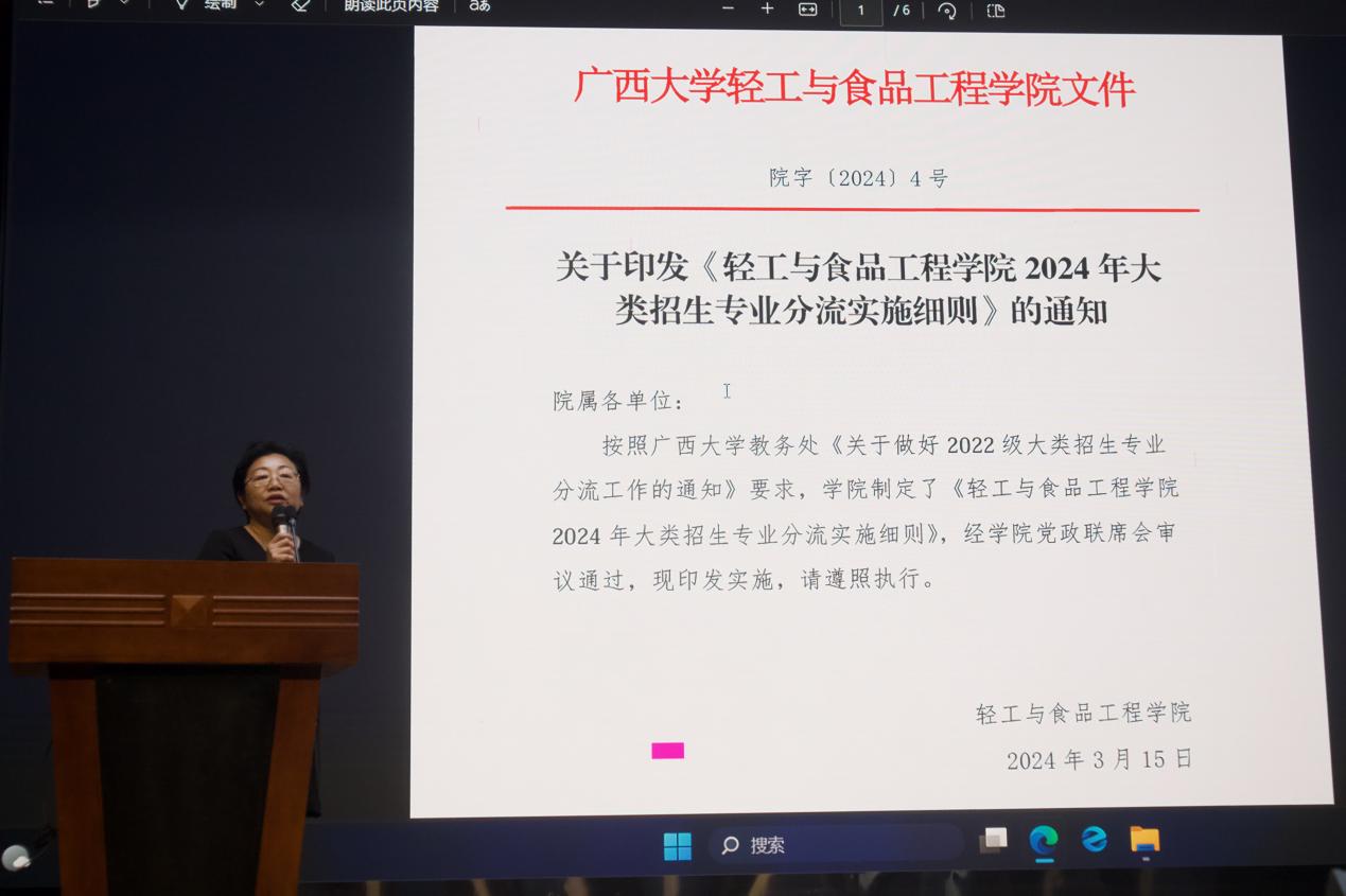 本科生专业分流工作,3月19日下午,学院2024年专业思想报告会在大学生活动中心一楼小剧场召开。学院党委副书记、纪委书记孙玲、副院长林莹、轻化工程系副主任何辉、包装工程系副主任段青山、制糖工程系副主任牛德宝、2022级轻工类各班班主任及学生参加会议。会议由学院团委书记徐羽主持。