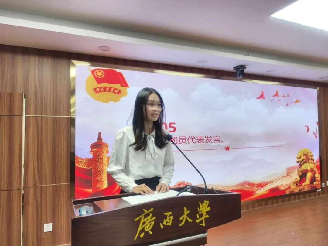 新团员代表郑琦欣表态将以高标准要求自己,传承共青团优良传统。优秀团员代表王晓辉寄语新团员,强调入团不是终点而是新起点,鼓励大家在实践中绽放光芒。